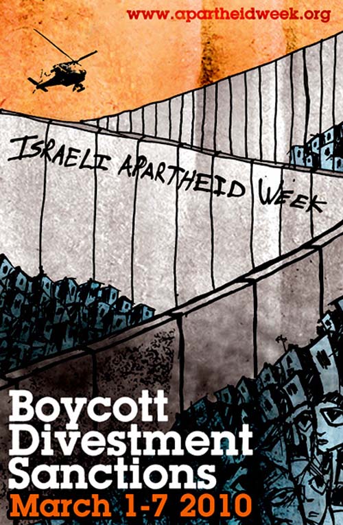 No cartaz vermelho: “A pedra vinga o sangue palestino”.